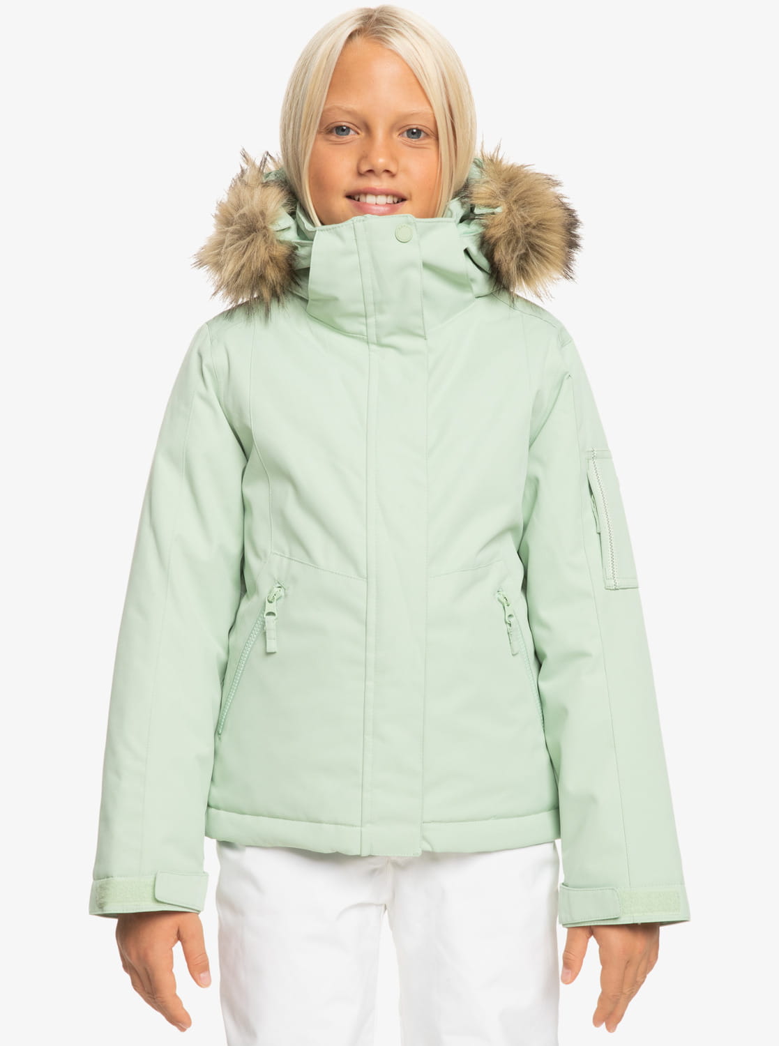 Kurtka narciarska Roxy dla dziewczynki to doskonały wybór dla miłośników zimowych sportów. To właśnie w tej kurtce twoje dziecko poczuje się na stoku komfortowo a na dodatek będzie wyglądać modnie i stylowo. Dzięki membranie DryFlight® o wodoszczelności 10,000mm kurtka nawet podczas intensywnych opadów śniegu pozostanie sucha. Szwy klejone w krytycznych miejscach zapewnią ochronę przed wodą i wiatrem. Kurtka posiada regulowany kaptur z odpinanym futerkiem
